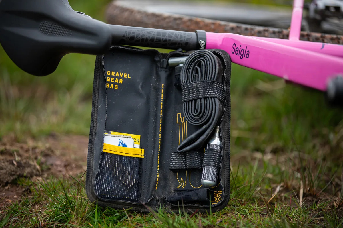 Для гравийной езды не требуется дорогого или сложного оборудования, но обязательно возьмите с собой минимальный набор: монтажки для шин, вставки для бескамерных покрышек, запасные камеры и мультитул.