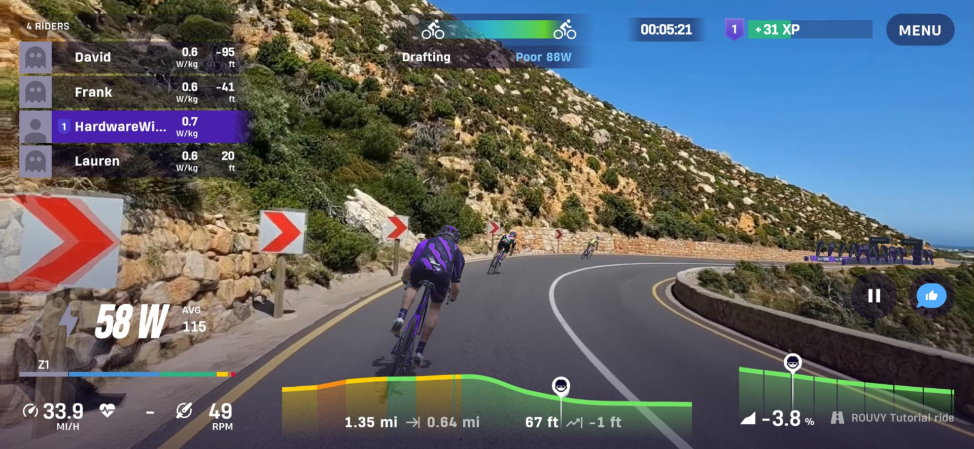 MyWhoosh очень похож на Zwift, но позволяет тренироваться даже без подписки.