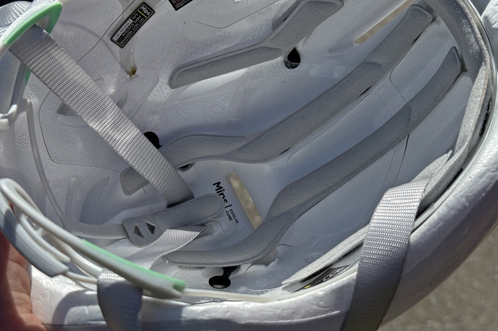 Главная фишка – прозрачная вставка MIPS Evolve Core. Когда-то MIPS настаивали на том, чтобы их культовый ярко-желтый слой был заметен – он стал символом безопасности в шлемах. Но теперь, когда почти все знают, что делает MIPS и зачем нужна защита от вращательных ударов при падении, компания решила "уйти в тень" – в буквальном смысле.