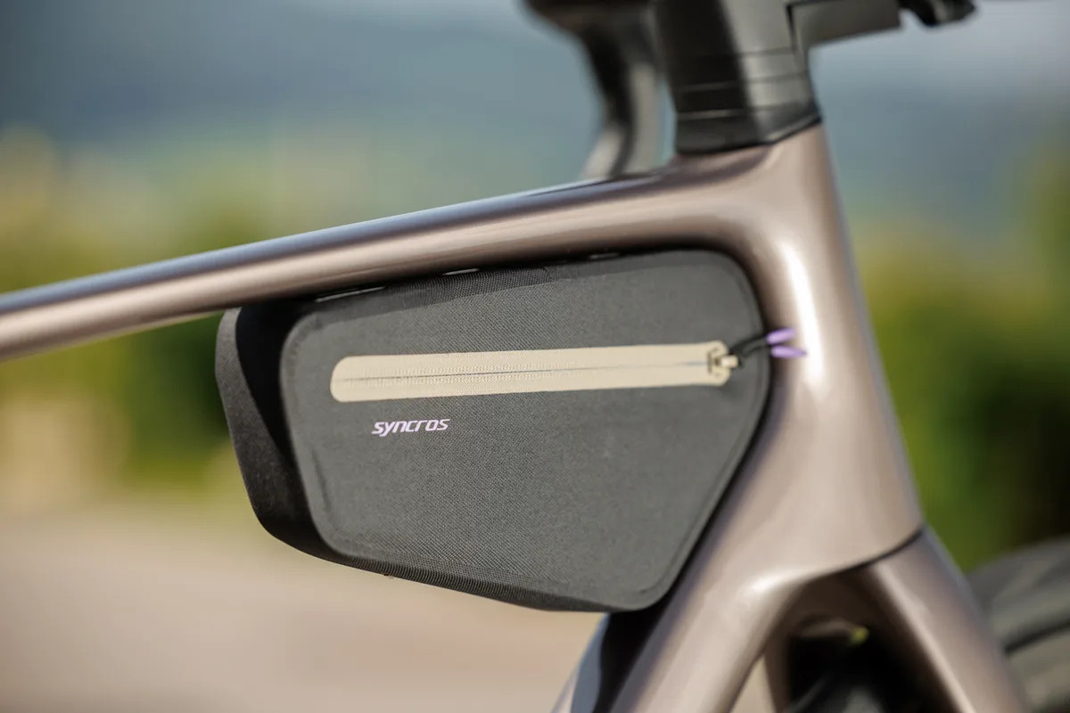 Велосипед также комплектуется сумкой на раму, которая крепится к скрытым точкам на верхней трубе, чтобы не портить аккуратный силуэт велосипеда, когда сумку не используешь.