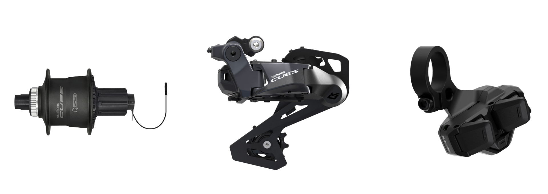 Второй ключевой компонент системы Q’Auto – это задний переключатель CUES RD-U8050 LinkGlide. Он будет выпускаться в двух версиях, каждая из которых может работать с кассетами LinkGlide. Модель CUES RD-U8050-SGS совместима с 11-скоростными кассетами 10-51T и 11-45T, а также с 10-скоростными вариантами 11-48T. Вторая модель переключателя называется CUES RD-U8050-GS – она будет работать с 10-скоростными кассетами 11-43T.