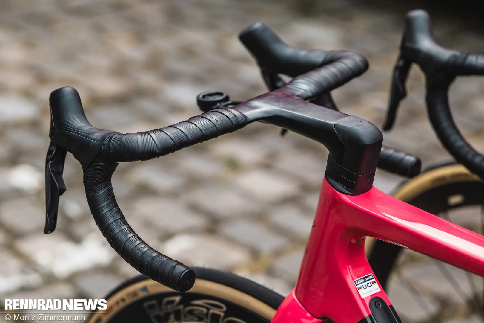 В целом команда Visma | Lease a Bike старалась максимально приблизить посадку на Soloist к посадке на S5. Для повышения комфорта Ваут ван Арт использовал двухсоставной кокпит с широко обмотанным рулем.