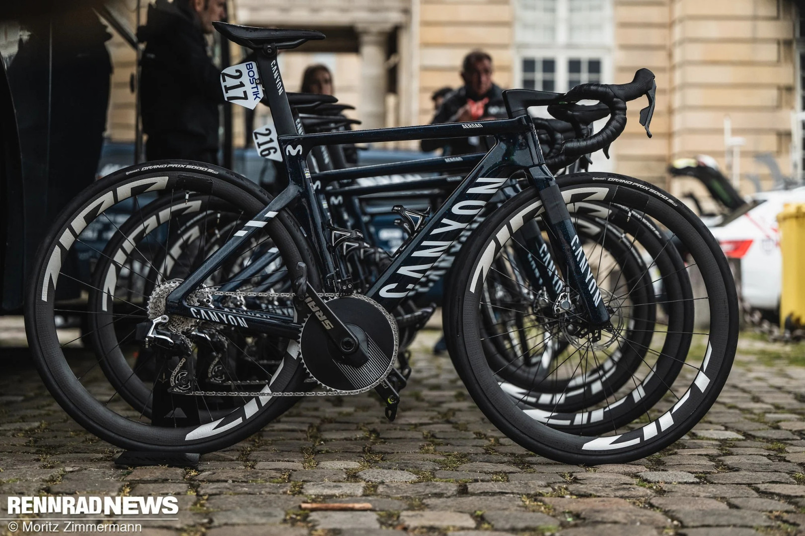 Париж-Рубе 2025 стало для команды Movistar уик-эндом, который хочется забыть: ни один из восьми гонщиков не добрался до финиша в воскресенье. Однако вряд ли в этом виноват их велосипед – Canyon Aeroad CFR, ведь именно на этой раме Матье ван дер Пул стал самым быстрым гонщиком дня. Здесь также были замечены пока неизвестные колеса Zipp с интегрированным датчиком давления в шинах.