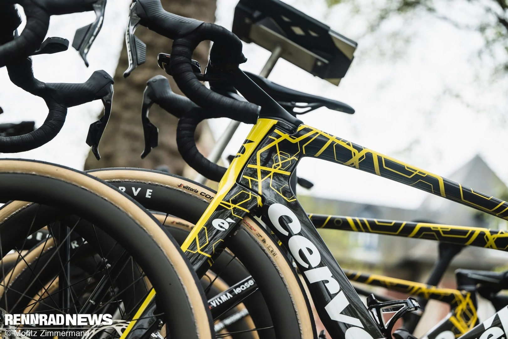 Soloist или S5? У Ваут ван Арта был выбор между обеими моделями, и обе находились на машине сопровождения. В итоге, несмотря на эксперименты на тренировках, он, как и вся команда, выбрал более комфортный Soloist. Самая интересная деталь – система Gravaa, использованная почти всеми гонщиками Visma | Lease a Bike. С помощью кнопки на руле можно регулировать давление в шинах Vittoria Corsa Pro шириной 32 мм. Для дополнительной надежности шины установлены бескамерно и дополнительно приклеены к ободу. Велосипед команды изобилует интересными деталями!