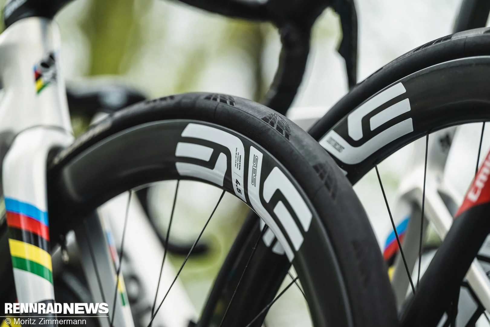 Заклеенные обода Zipp намекают на то, что это еще не представленный прототип. Похоже, в них интегрирована новая версия системы мониторинга давления.