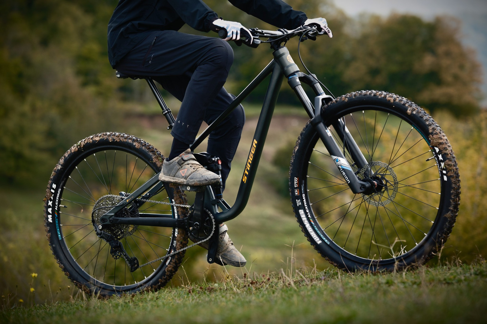 На велосипедах из линейки Graphite будут дропауты и «петух» SRAM UDH – это универсальное решение, позволяющее поставить на велосипед любые новые групсеты, в том числе, SRAM Transmission. Ось заднего колеса при этом будет сквозной, размером 142x12мм, для нормальной жёсткости. Если говорить о более дорогих байках, к примеру, о Torsion, там уже будут более широкие колёсные оси стандарта Boost, которые обеспечивают ещё больше жёсткости. А, в целом, такие сквозные оси можно увидеть на всех серьёзных спортивных моделях от Stinger.